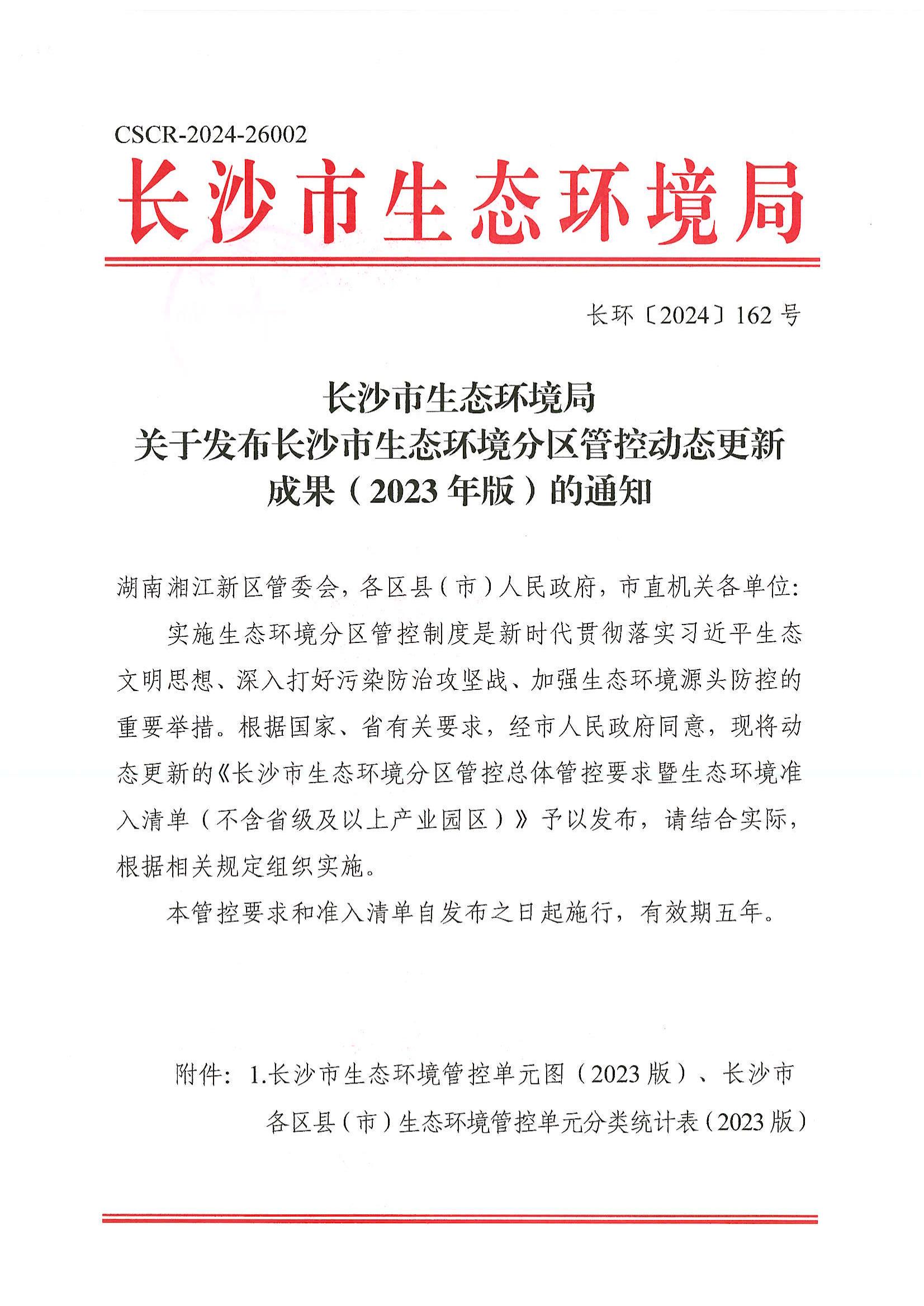 關(guān)于發(fā)布長沙市生態(tài)環(huán)境分區(qū)管控動態(tài)更新成果(2023版)的通知