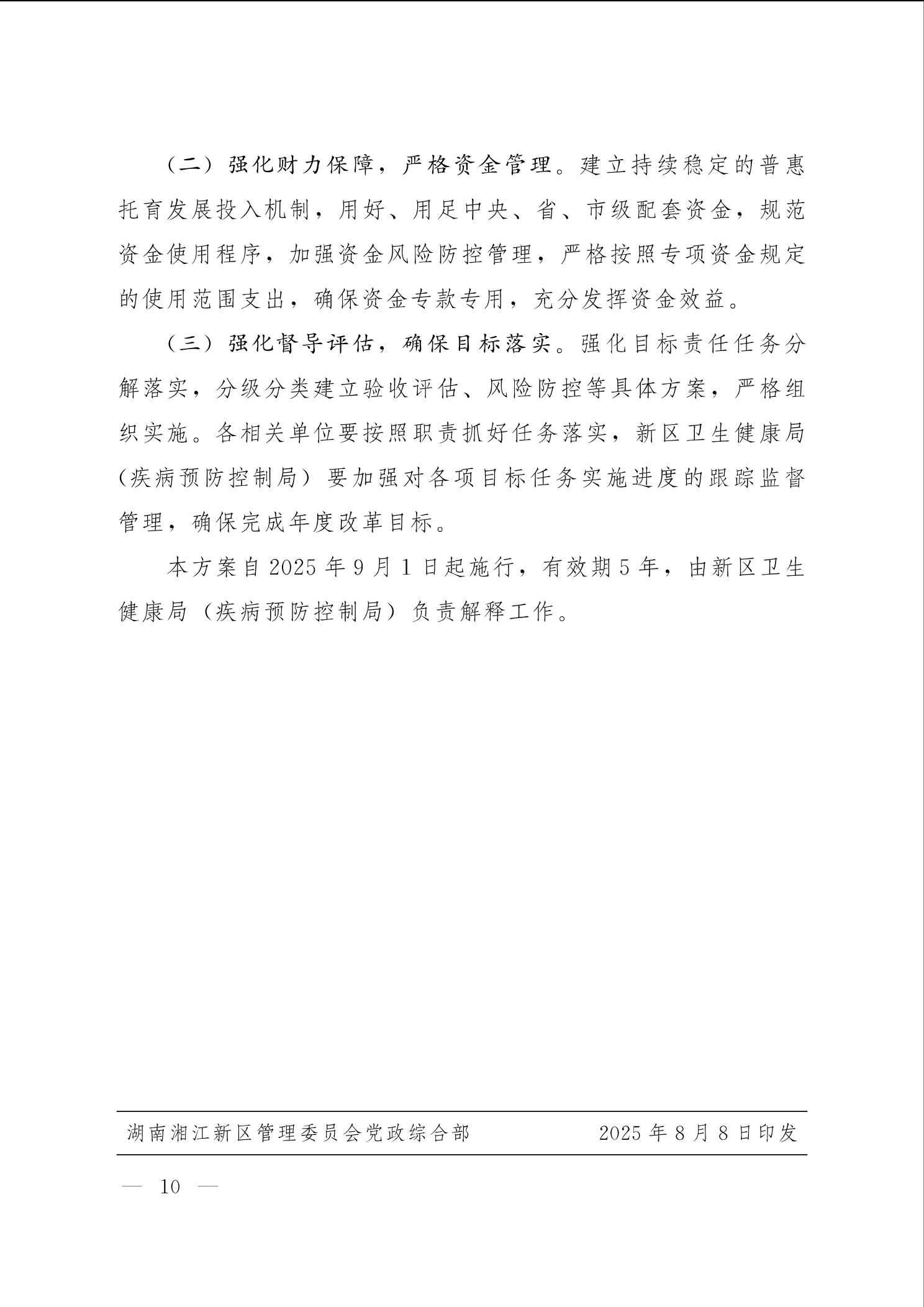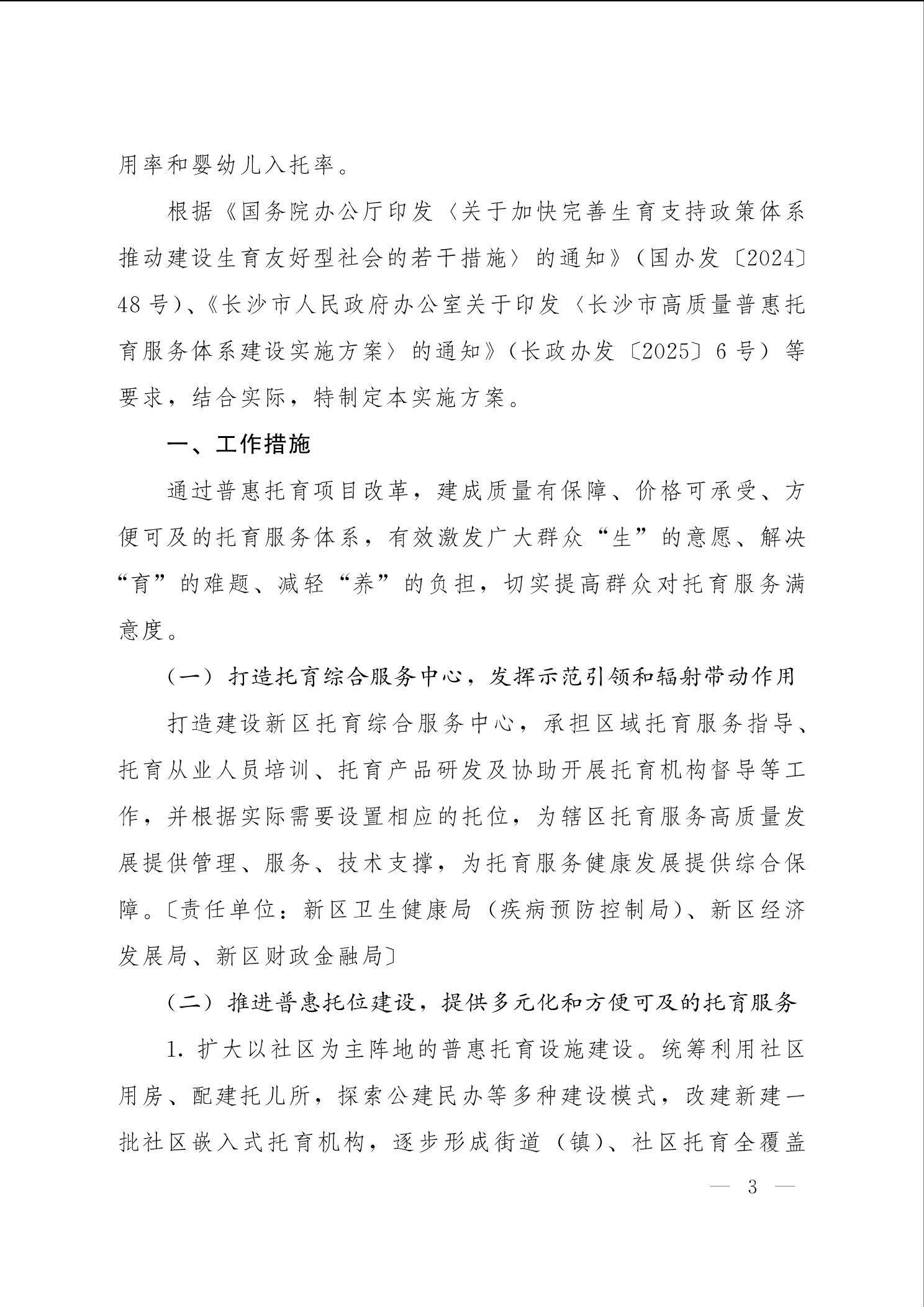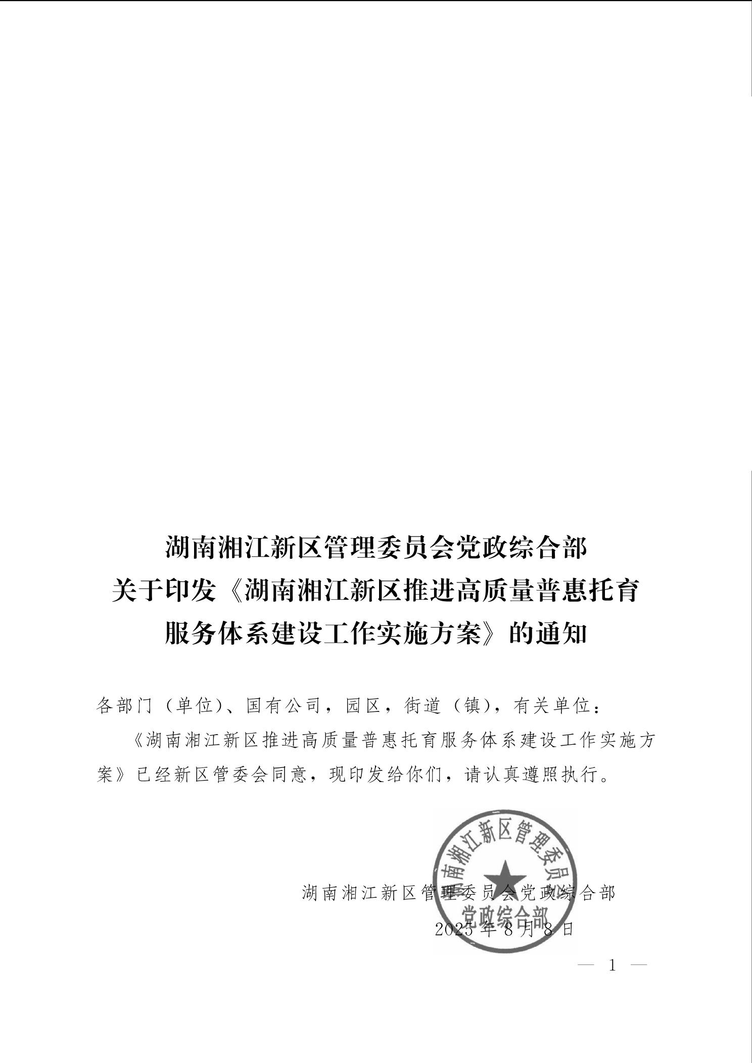 關(guān)于印發(fā)《湖南湘江新區(qū)推進高質(zhì)量普惠托育服務體系建設工作實施方案》的通知