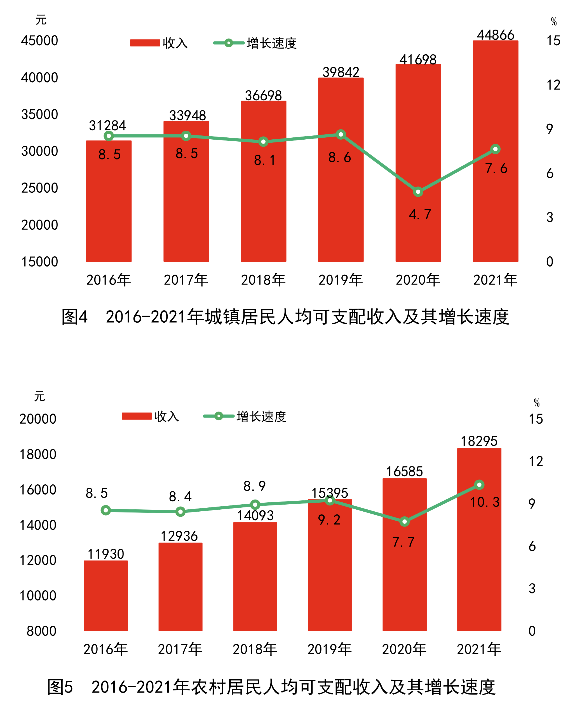 全年全省居民人均可支配收入31993元,比上年增長8.9%;人均可支配收入中位數25834元,增長8.6%。按常住地分,城鎮居民人均可支配收入44866元,增長7.6%;城鎮居民人均可支配收入中位數40177元,增長7.2%。農村居民人均可支配收入18295元,增長10.3%;農村居民人均可支配收入中位數16496元,增長11.2%。城鄉居民可支配收入比值由上年的2.51縮小為2.45。分區域看,長株潭地區居民人均可支配收入48924元,增長8.1%;湘南地區居民人均可支配收入29543元,增長8.7%;大湘西地區居民人均可支配收入22190元,增長9.2%;洞庭湖地區居民人均可支配收入29165元,增長9.3%。脫貧縣[16]農村居民人均可支配收入13537元,增長12.6%。